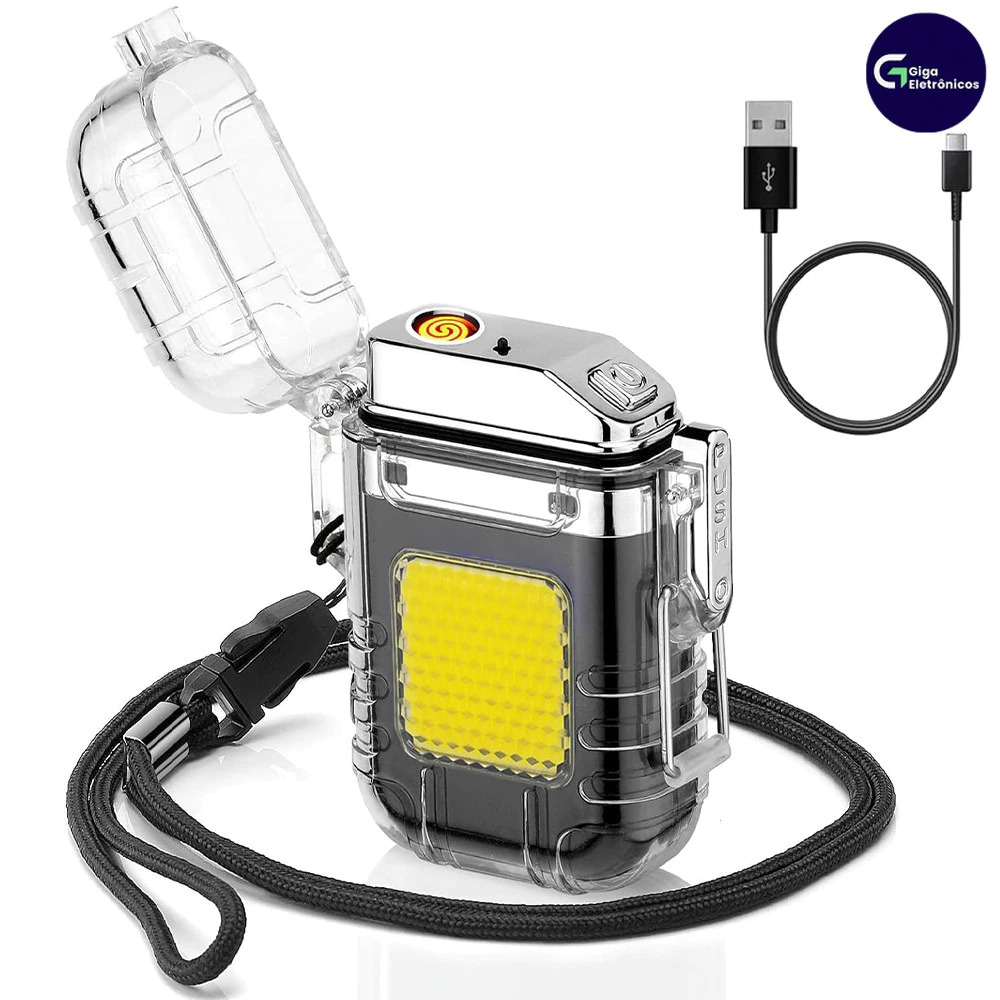 Isqueiro Elétrico LED Recarregável USB Design Ergonomico e Leve
